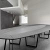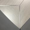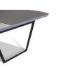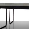 The table is constructed with a 30mm one-piece rectangular table top with 10mm straight angle and 90mm sharp bevel edges. Laser-cut sheet metal create the elegant and unique leg structure.