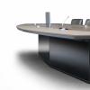 The base consists of a hidden metal structure, closed with removable panels allowing easy access to the interior of the table for cable managing and maintenance purposes.