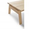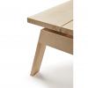 The tabletop is separated into three panels and the base is a trestle A frame with chunky solid Oak wood legs that conceal the metallic connecting structure.