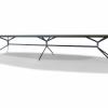 The table is constructed with a 30mm one-piece rectangular table top with 10mm straight angle and 90mm sharp bevel edges. Laser-cut sheet metal create the elegant and unique leg structure.