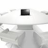 The tables main purpose and design is to make high level presentations using multimedia equipment. Optional integrated retractable monitors system, cable management and other electronic elements complete the system.