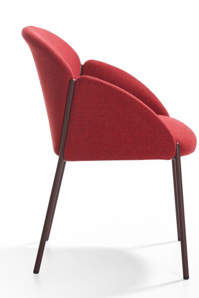 Because of its soft geometry and versatility in available fabrics and leg colours, the chair blends in with any interior.