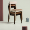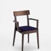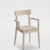 The armchair, stackable like the chair, is distinguished by the curved shape of the armrests, which have their own particular character.