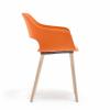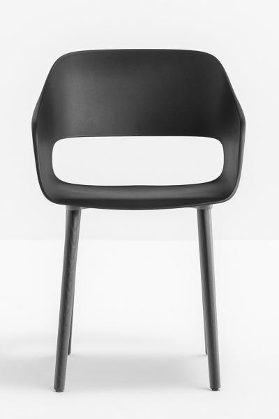 Armchair with polypropylene shell and die-cast aluminium frame. Solid ash wood legs.