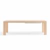 Aluminium sliding rail guides are used to extend the table when needed with leaves stored in the frame to increase the overall length.