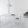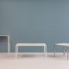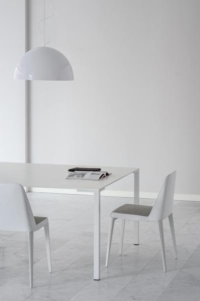The extruded aluminium legs, brushed or powder coated, can be fixed on different square or rectangular top dimensions.