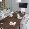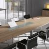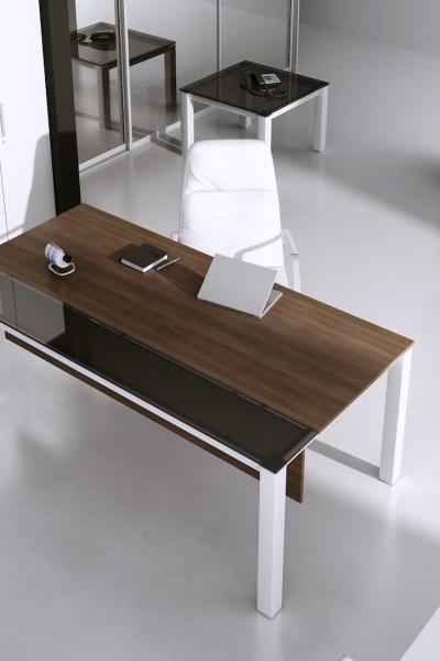 The striking and teutonic Graf contemporary furniture range has an angular bold leg frame with chrome detailing at the top and bottom of the leg frame. The range includes executive desks and boardroom tables with optional satinised desk top glass panels. The executive desks, tables and storage options are available in a comprehensive range of sizes, desk top styles and finishes. Lead Time 6 weeks