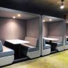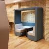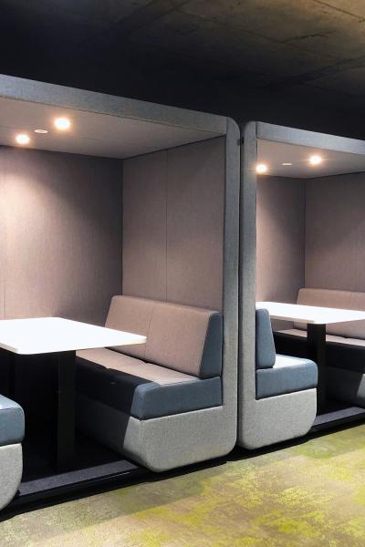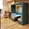 The Bob den collection offers comfort and privacy in beautifully upholstered walls. The design, based on mobile devices, utilises large flat panels and soft rounded corners which not only look great but reduce and absorb sound.