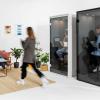 LED lighting in the ceiling of the pod creates a space that is idea for video calls.