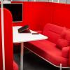 The Leaf Pod encompasses single acoustic armchairs, acoustic sofas, study pods, managers pods, brainstorming pods, snake pods (3 desks), chat pods, recharge pods and single person standing pods.