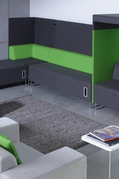 Quadra is a system of modular seats with a virtually endless number of possible arrangements. Out of several simple modules and walls, we can create a cozy space for work, or, using open sets, improve the functionality of traffic passages. In areas which are full of noise, the acoustically passive Quadra Phonebox will give you moments of quiet and concentration. It provides perfect insulation from the noise surrounding you.