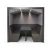 An innovative and customizable office meeting booth that reinvents the modern workspace with its unique design. The majority of meetings are informal, impromptu and held with under 4 people, meaning a meeting room becomes an expensive and sometimes formally disruptive overkill to a growing need. Our workspaces are increasingly becoming places to collaborate and socialise, so the need for meeting spaces is ever-growing. The Railway Carriage has been developed to meet this exact need. Acting both as an ideas hub for collaboration as well as a relaxed, focus space for concentration, this office meeting booth has a sleeker aesthetic with a stronger, more modular design. Available in over 300 million combinations, it has varying styles, a huge range of finish options and accessories. Not only can this pod create an extension of your brand in the workspace with its customizable components, it is also relocatable and therefore adaptable to ever-changing workspace requirements. Attract top talent by creating an efficient, uniquely-designed space with the Railway Carriage.