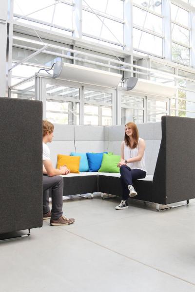The Voo Voo 9XX acoustic seating range is an extension of the Voo Voo collection. The collection is to create places of retreat in public areas and it is an ideal solution for open space rooms, shopping center, universities, schools and libraries. The tall, upholstered backrests act as acoustically passive partition walls. They allow their users to create a relaxation zone providing high sound absorption. Owing to Voo Voo 9XX “a private room” can be separated from a bigger space where we can engage in informal talks, focus on a project or just relax. The raw body of Voo Voo 9XX is the essence of modernist design. It is characterized by high functionality, which enables combination of sets with any seat length. The advantages of this collection are the stable, easy and fast system of combining modules as well as the possibility to choose cushions which ideally match the space to be arranged.