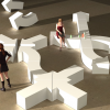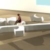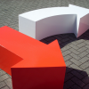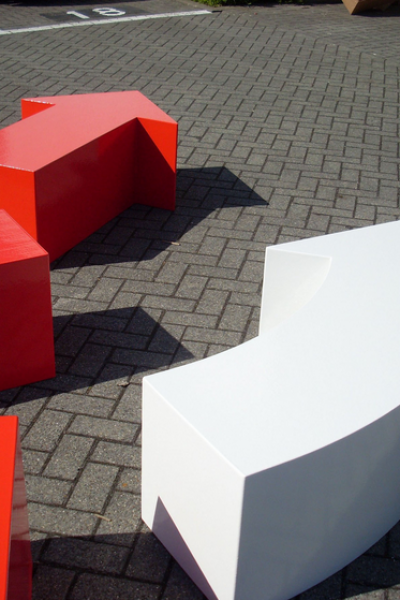 Arrows designed by Pieter Jamart and Jan De Cuyper is available in a number shapes in standard and non standard colours. There are four standard shapes a straight arrow (135L x 45H x 45W /Arrow head 89cm), a curved arrow, then a rectangular block (90L x 45H x 45W) and a curved block. As with all the Sixinch foam seating products there a number of finishes available; softflex is for indoor use only and is built up from 3 to 6 layers of softflex it has a slightly bumpy texture to the finish; Flex Plus is an advanced soft feel 3 layer coating system suitable for both indoor and outdoor use; Hardcoat is the final option which as the name implies a really tough - the final coat is applied on EPS Styrofoam and is rock hard for use in very high traffic areas.