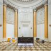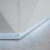 The glittering front made of glass enlivens every room despite its neutral colour – aluminium, black or white. Minimal aesthetic and clean lines are the most striking features of this receptions desk that are highlighted by an illuminated kick plate. Lead time 6 weeks.